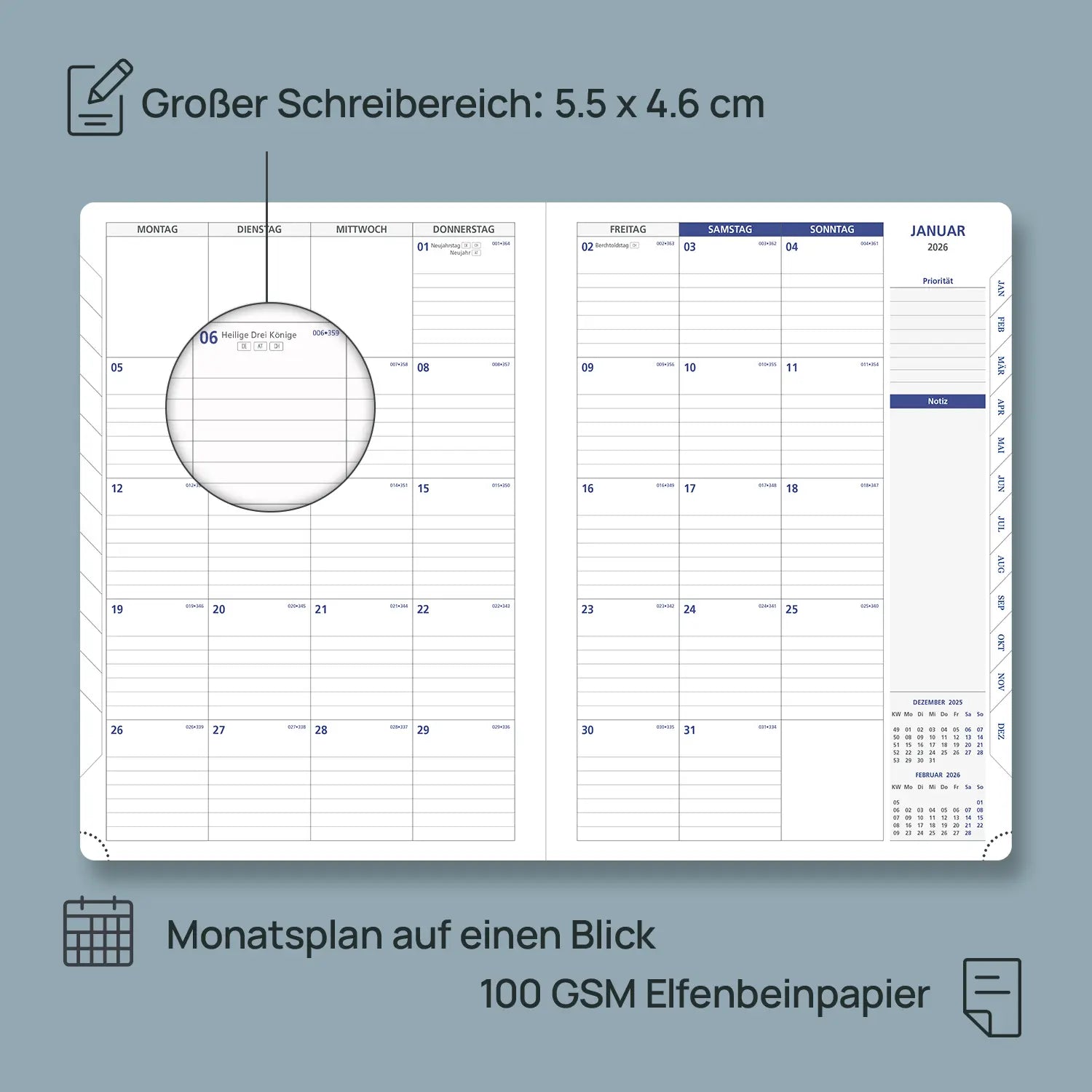 German A5 Weekly Planner 2026 Softcover | 30-Minute Intervals