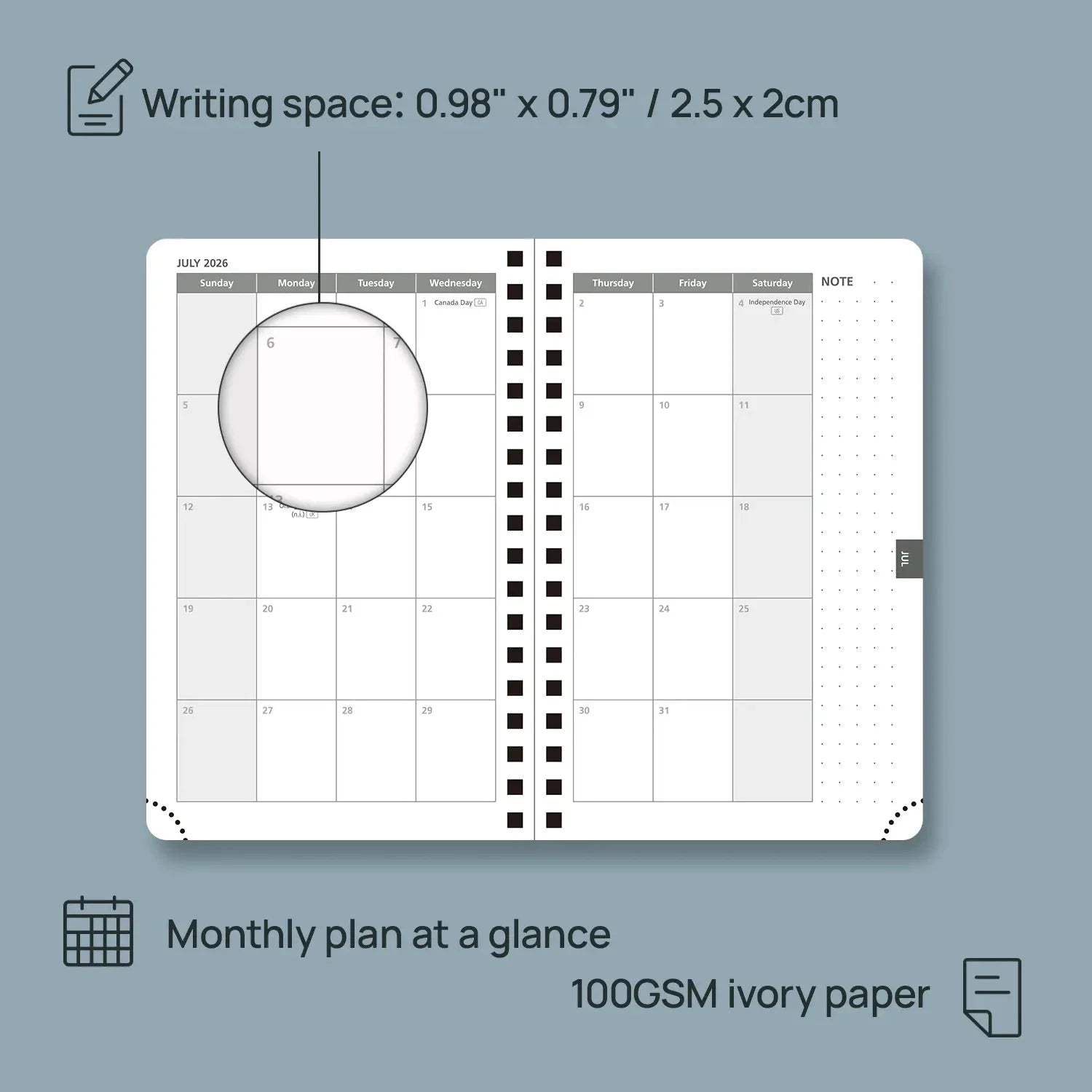 UK Pocket Mini Size Monthly Planner 2026 Premium Neo Calendar