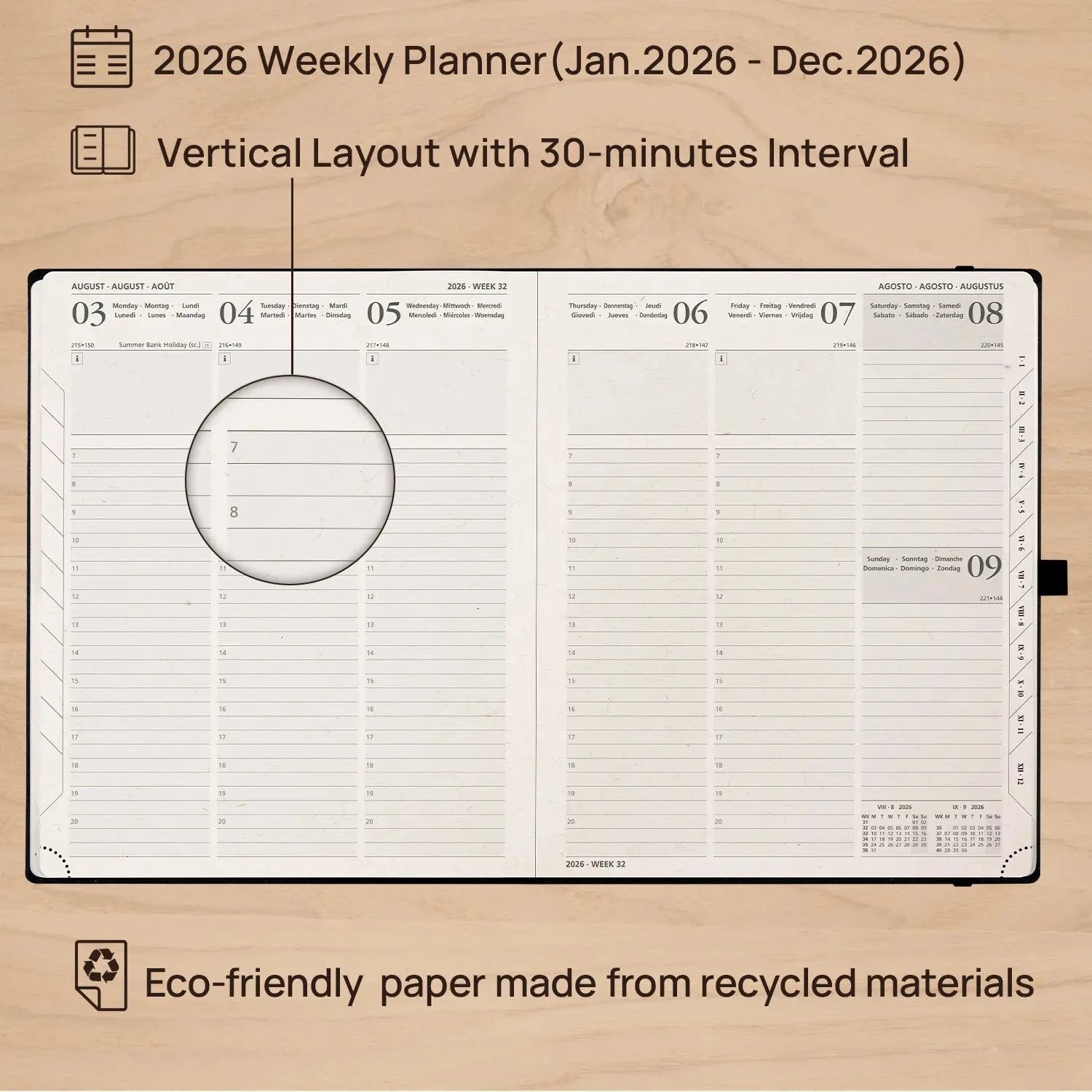 EU Large Size Recycled Weekly Planner 2026 Hardcover
