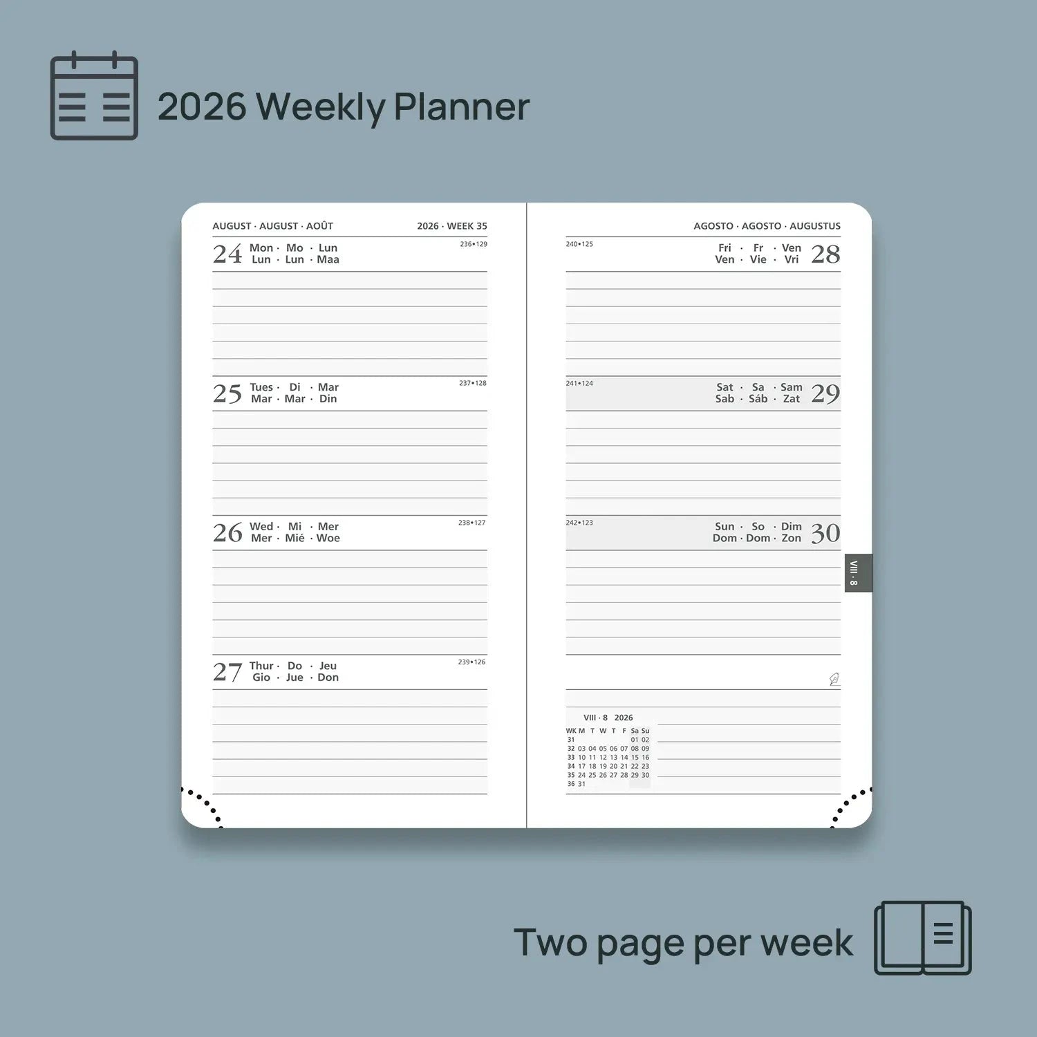 EU Pocket Size Weekly Planner 2026 Hard Cover Calendar Planner
