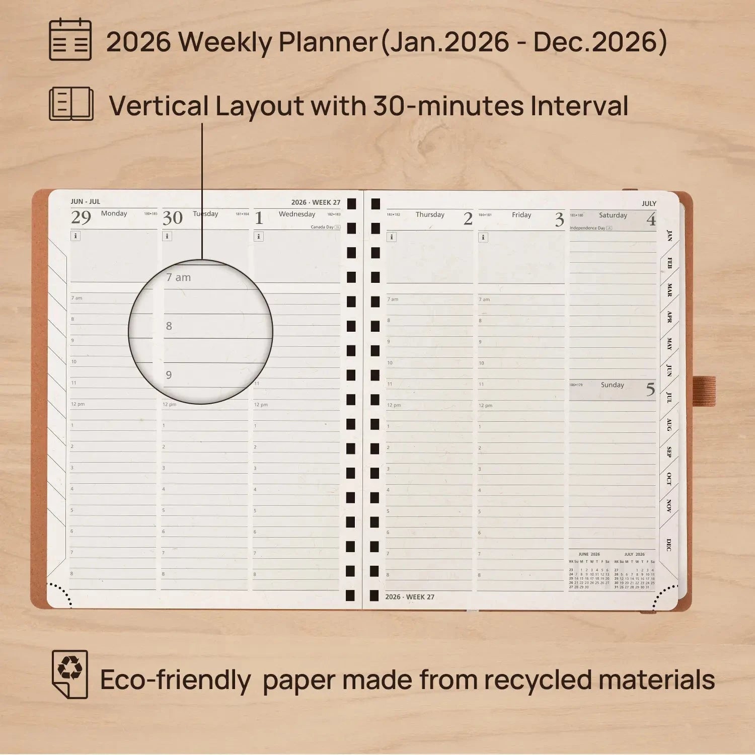 POPRUN 12-Month Hardcover Weekly Planner Experience a year of perfect planning with our 12-month planner. Designed to help you manage your daily tasks, long-term goals, and important matters, this planner offers monthly, daily, and weekly layouts to record meetings, tasks, and personal activities. Stay organized and in control with ease as you work, study, or live your life with this efficient and well-organized time management tool. Model: WERO7-26 Year: Jan.-Dec. 2026 Format: Weekly Cover: Hard Cover Binding: Spiral Size: 8.5×6.5 in / 22.5×16.5 cm Layout: Vertical, 2 pages per week Bonus Features: Built-in “Today” ruler for easy measurement and drawing Paper Weight: The inner pages are 100gsm Plan with confidence. Live with intention.Start the new year fully prepared with the POPRUN 2026 Weekly Planner. Designed for professionals, students, and anyone striving for balance, this hardcover planner brings structure to your busiest days and inspiration to your quiet moments. Whether you’re mapping out work meetings, setting personal goals, or making time for family, this planner ensures you stay organized without losing sight of what matters most.