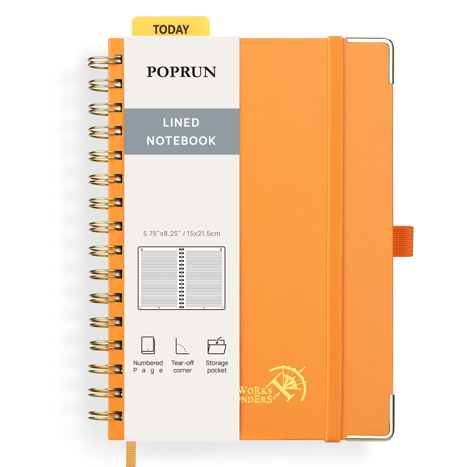 Perfect for clear notes and structured thinkingWhether you’re a college student taking lecture notes or a professional organizing meeting minutes, the lined notebook keeps your thoughts neat and easy to follow. With guided lines, you can focus on ideas instead of formatting, making it ideal for essays, study notes, and business planning. Description Model: WH145L Quantity: 1 books Color: Orange Binding: Spiral Cover: Violet Page Size: 5.75x 8.25 in / 15×21.5cm This 5.75” x 8.25” college ruled spiral notebooks is designed for students, professionals, and creatives who need a reliable space for their ideas. Whether you’re jotting down class notes, planning your week, or sketching out the next big project, its lined pages keep your thoughts structured and easy to revisit. Premium Writing ExperienceCrafted with 120 GSM thick, acid-free paper in a soft ivory tone, it’s made to handle pens, pencils, and even markers without bleed-through—so every word and sketch stays clean and sharp. Thoughtful Details That MatterStay organized with built-in extras: a flexible “TODAY” ruler for quick navigation, bookmark ribbons for important pages, a pen loop, and a foldable pocket to keep receipts or notes close. Tear-off corners help you flip to fresh pages instantly, while sticker index tabs let you personalize your journal. Durable Yet StylishWith its sturdy hardcover and twin-wire binding that folds 360° flat, this notebook is built to go wherever you go—whether it’s your campus library, a coffee shop brainstorming session, or the office boardroom. Your Style, Your ColorChoose from 14 vibrant colors to match your personality and mood. Perfect as a school companion, a daily work essential, or a creative gift.