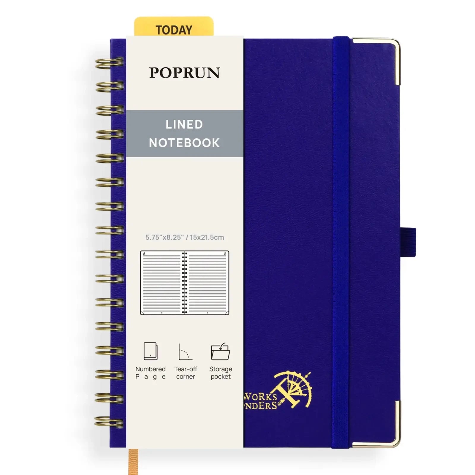 Perfect for clear notes and structured thinkingWhether you’re a college student taking lecture notes or a professional organizing meeting minutes, the lined notebook keeps your thoughts neat and easy to follow. With guided lines, you can focus on ideas instead of formatting, making it ideal for essays, study notes, and business planning. Description Model: WH145L Quantity: 1 books Color: Royal Blue Binding: Spiral Cover: Violet Page Size: 5.75x 8.25 in / 15×21.5cm This 5.75” x 8.25” college ruled spiral notebooks is designed for students, professionals, and creatives who need a reliable space for their ideas. Whether you’re jotting down class notes, planning your week, or sketching out the next big project, its lined pages keep your thoughts structured and easy to revisit. Premium Writing ExperienceCrafted with 120 GSM thick, acid-free paper in a soft ivory tone, it’s made to handle pens, pencils, and even markers without bleed-through—so every word and sketch stays clean and sharp. Thoughtful Details That MatterStay organized with built-in extras: a flexible “TODAY” ruler for quick navigation, bookmark ribbons for important pages, a pen loop, and a foldable pocket to keep receipts or notes close. Tear-off corners help you flip to fresh pages instantly, while sticker index tabs let you personalize your journal. Durable Yet StylishWith its sturdy hardcover and twin-wire binding that folds 360° flat, this notebook is built to go wherever you go—whether it’s your campus library, a coffee shop brainstorming session, or the office boardroom. Your Style, Your ColorChoose from 14 vibrant colors to match your personality and mood. Perfect as a school companion, a daily work essential, or a creative gift.