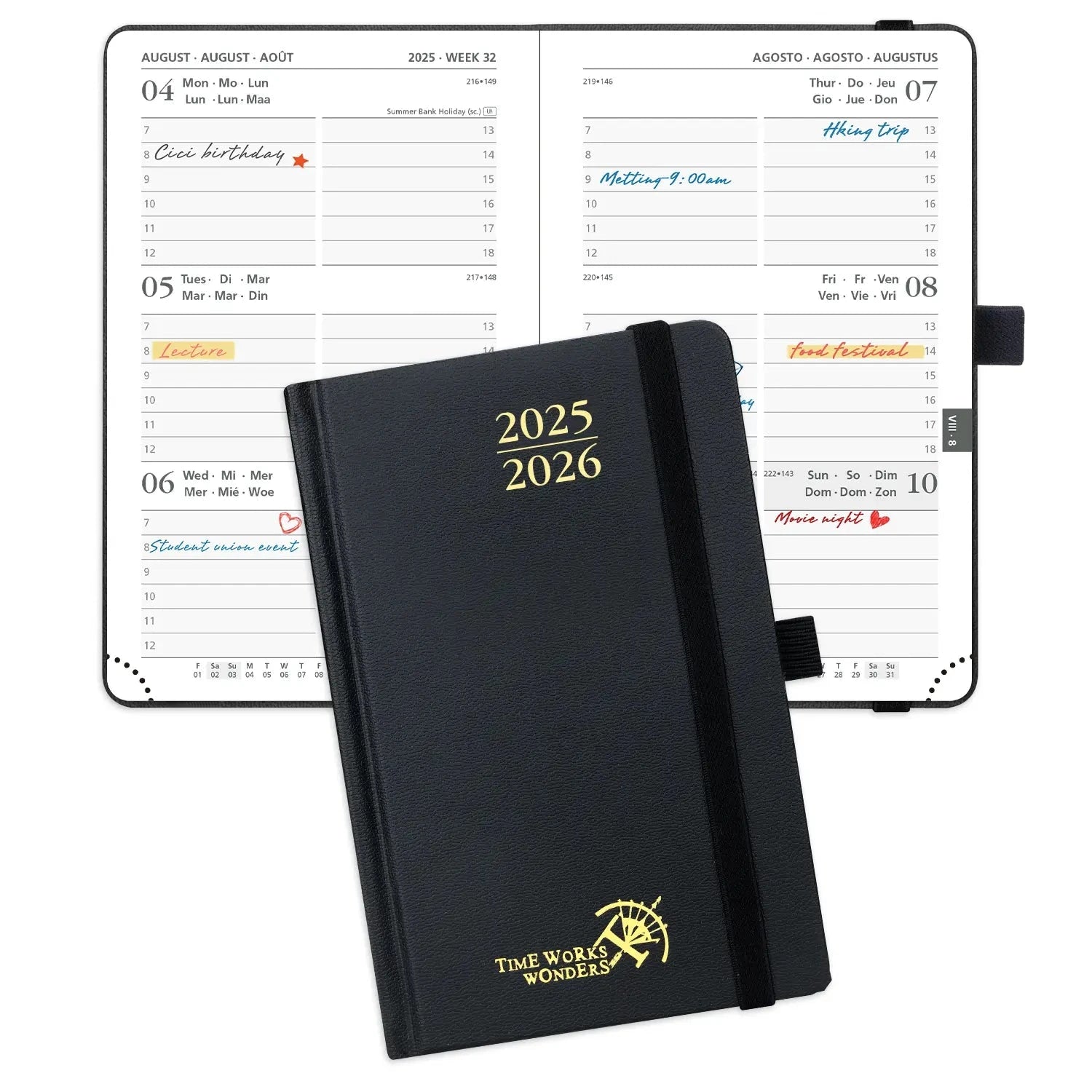 Β 17Month – Hardcover Weekly Academic planner Stay organized with the POPRUN 2025β2026 Academic Planner β an 17-month organizer from August 2025 to December 2026. Perfect for back-to-school, semester planning, and long-term projects, it keeps students, professionals, and creatives focused with one continuous tool for success. Description Model: AC6HA6-26 POCKET CALENDAR 2025-2026: Our 16 x 10.5 cm Pocket Planner covers 12 monthsΒ (from August 2025 to December 2026). The weekly layout includes ample space to write (from 7:00am to 6:00pm). One week is laid to view on 2 pages. Each monthly layout contains an overview of the month. PERFECT SIZE: Our Purse Calendar features a compact, durable, and lightweight design that slips easily into bags, purses, or pockets, comfortable to carry and use. It is perfectly tailored for students to fit in with their school schedule. BONUS FEATURES: Experience abundant writing space in our Pocket Planner’s weekly layout, featuring 2-year Calendar Pages + 2025-2026 Yearly Overview + Week-to-View + Monthly Calendar + International Holidays + Expense Tracker + Contact Pages + Password Page + Dotted Note Page BUILT-IN EXTRAS: Tear-off Corners and Bookmark Ribbons help mark important pages, while an Elastic Closure ensures your planner stays securely closed. Plus, the Foldable Pocket provides the perfect space to store notes, receipts, and important documents. Thick Paper: The use of premium 80GSM acid-free ivory paper, makes it silky smooth to write on and ink resistant, bringing you the ultimate writing experience FSC Certification: The use of ecological paper from sustainable forests and our compliance to European Community Regulation on chemicals and their safe use are our commitment to the environment