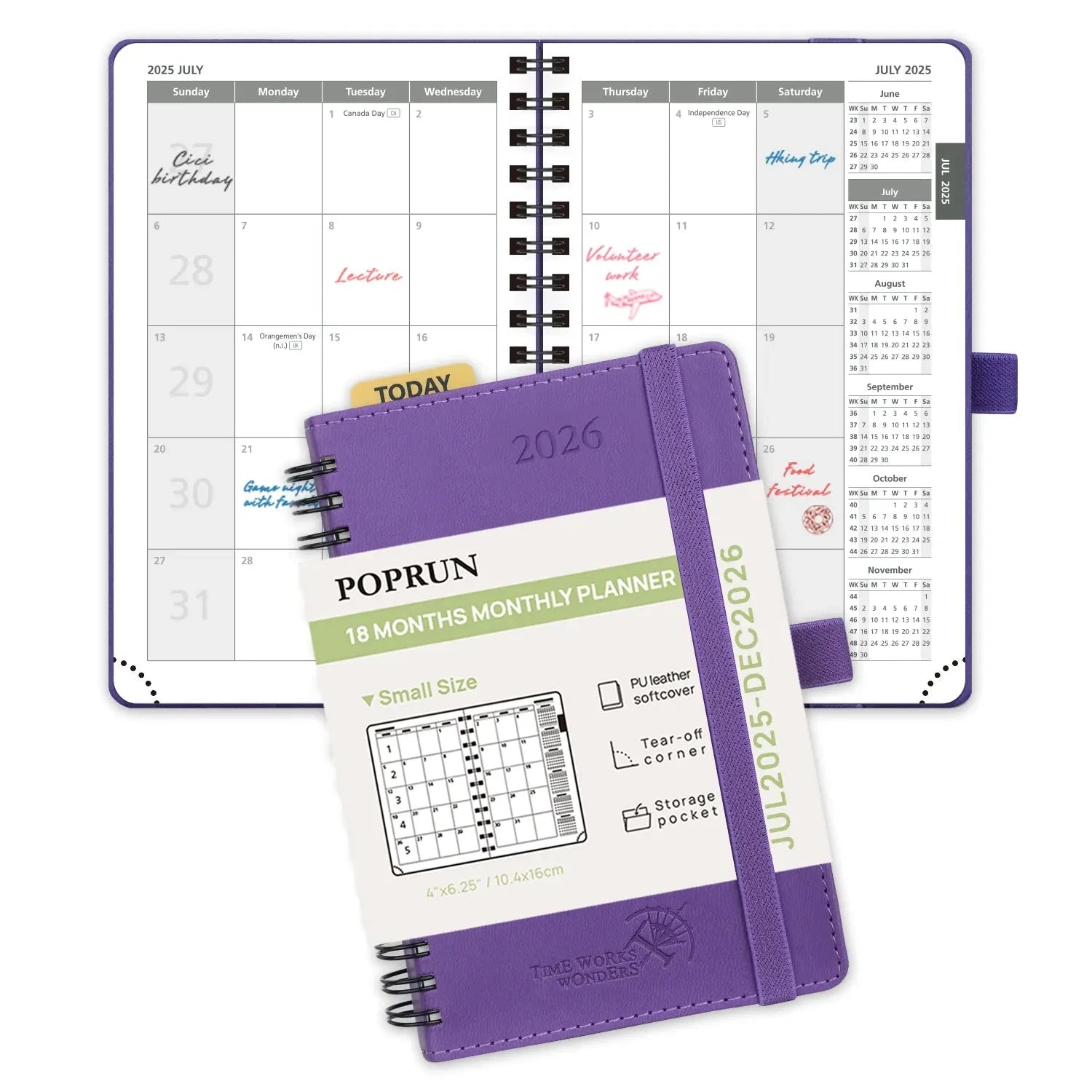 17Month – Hardcover Weekly Academic planner Stay organized with the POPRUN 2025–2026 Academic Planner — an 17-month organizer from August 2025 to December 2026. Perfect for back-to-school, semester planning, and long-term projects, it keeps students, professionals, and creatives focused with one continuous tool for success. Description Model: AW6TLK7-26 AUGUST 2025 – DECEMBER 2026 ACADEMIC PLANNER: This horizontal planner covers 12 months of 2025-2026 academic year with a large size ( 26.5 x 21.5 cm), which offers spacious writting space. It is perfectly tailored for students to fit in with their school schedule. HORIZONTAL WEEKLY LAYOUT WITH LINED PAGES: Starting from Monday to Sunday, this academic weekly planner offers 2 pages per week with lined notes pages for every date, which is used for spacious room to write to-do list. Besides, each month includes a monthly overview and dotted notes section on the right side before the weekly layout. BONUS FEATURES: The “TODAY” Ruler and Stair-like Monthly Tabs enable easy locating of the current date. Tear-Off Corners and Bookmark Ribbons are added to mark any page you want. The Elastic Closure ensures the planner securely closed, while the self-adhesive Pen holder holds your pen. Additionally, the Foldable Pocket offer a convenient space to store important documents. EXTRA FUNCTION PAGES: This weekly appointment book also contains “2025-2026 Yearly Overview” Pages + “2025-2026 Holiday & Calendar” Pages + Contact Pages + Password Pages + 10 Dotted Notes Pages, providing space for recording important information and enhancing organization. Thick Paper: The use of premium 100GSM acid-free ivory paper, makes it silky smooth to write on and ink resistant, bringing you the ultimate writing experience FSC Certification: The use of ecological paper from sustainable forests and our compliance to European Community Regulation on chemicals and their safe use are our commitment to the environment