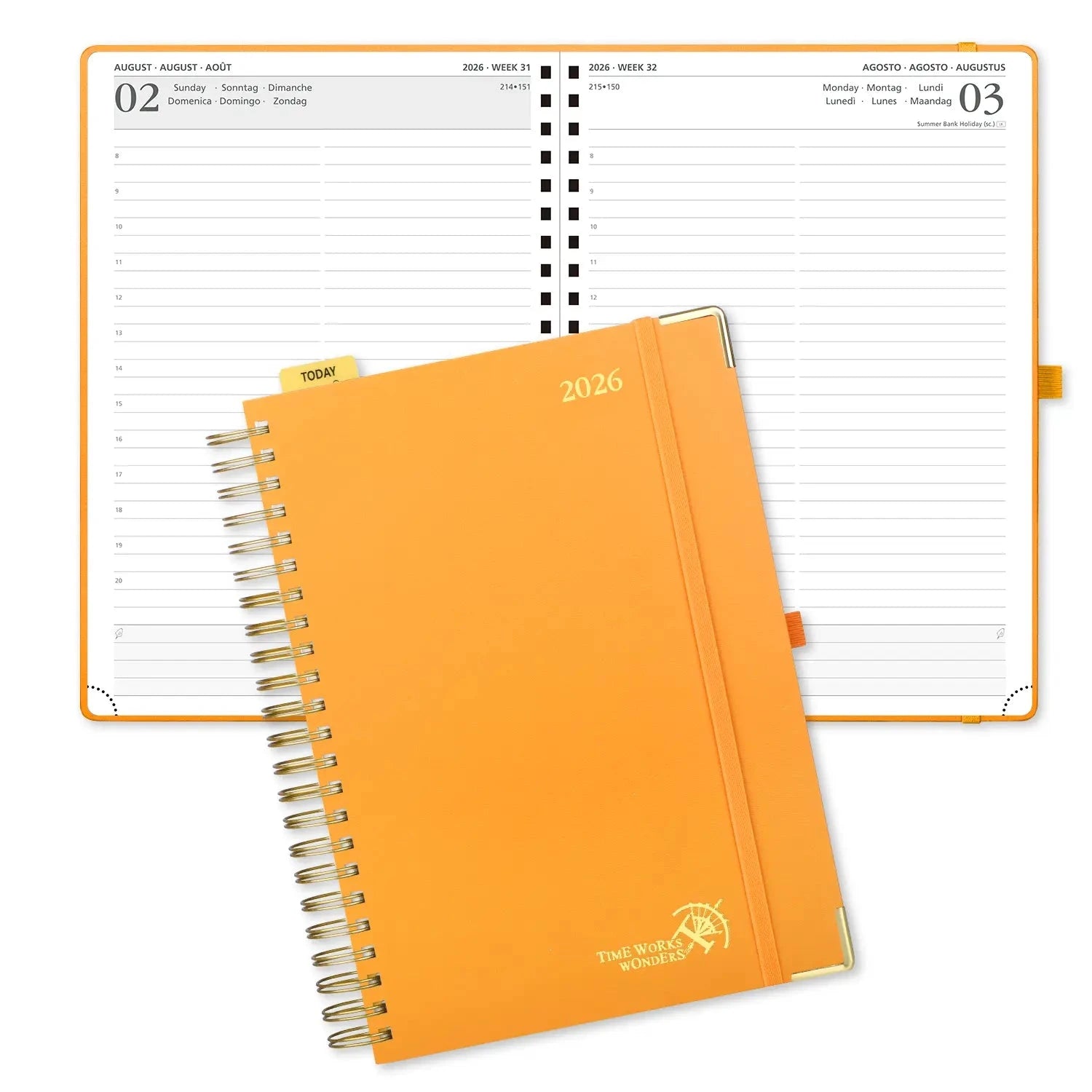 POPRUN 12 Month -Hardcover Daily planner Keep your work and personal life in balance with our 12-month daily planner. It features a clear daily layout that allows you to efficiently plan your daily tasks and goals, whether for work or personal matters. The day view gives you a quick overview of your daily to-do list, while the 12-month planner view helps to schedule long-term activities and goals. This planner is designed to keep you organized even with a busy schedule. Description Model: W6HBTA4-26 Year: Jan.-Dec. 2026 Format: Daily Binding: Spiral Layout: Vertical, 1 page per day Cover: Hard Cover Size: A4 21.8 x 30.4 cm Bonus Features: Built-in “Today” ruler for easy measurement and drawing Paper Weight: The inner pages are 100gsm