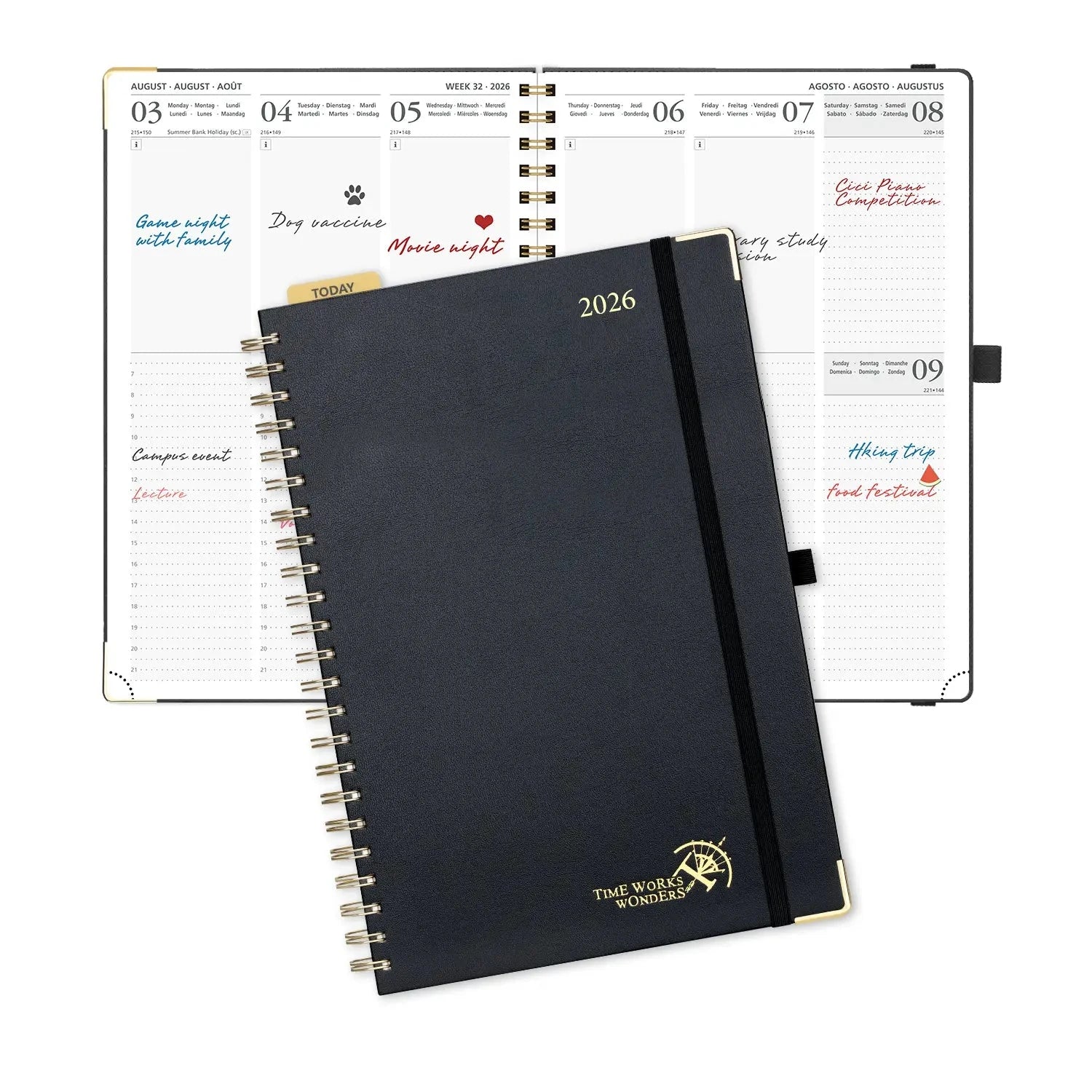 POPRUN 12 Month – Hardcover Weekly planner Experience a year of perfect planning with our 12-month planner. Designed to help you manage your daily tasks, long-term goals, and important matters, this planner offers monthly, daily, and weekly layouts to record meetings, tasks, and personal activities. Stay organized and in control with ease as you work, study, or live your life with this efficient and well-organized time management tool. Description Model: W6HA4-26 Year: Jan.-Dec. 2026 Format: Weekly Binding: Spiral Layout: Vertical, 2 pages per week Cover: Hard Cover Page Size: A4 21cm x 30.2cm Bonus Features: Built-in “Today” ruler for easy measurement and drawing Paper Weight: The inner pages are 100gsm