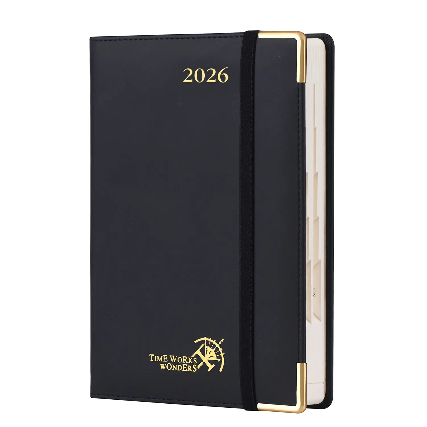 12 Month – Hardcover Dailyย planner Keep your work and personal life in balance with our 12-month daily planner. It features a clear daily layout that allows you to efficiently plan your daily tasks and goals, whether for work or personal matters. The day view gives you a quick overview of your daily to-do list, while the 12-month planner view helps to schedule long-term activities and goals. This planner is designed to keep you organized even with a busy schedule. Description Model:ย C6FEDA5-26 Year: Jan.-Dec. 2026 Format: Daily Binding: Casebound Layout: Vertical, 1 page per day Cover: Premium Hard Cover Page Size: 8.5 x 5.75 in / 21.5 x 14.5 cm Paper Weight: The inner pages are 100gsm Picture starting your day with coffee in one hand and your 2026 planner open on the table. Every page gives you the space to map out your schedule, from morning meetings to weekend plans, helping you balance work, family, and personal time with ease.