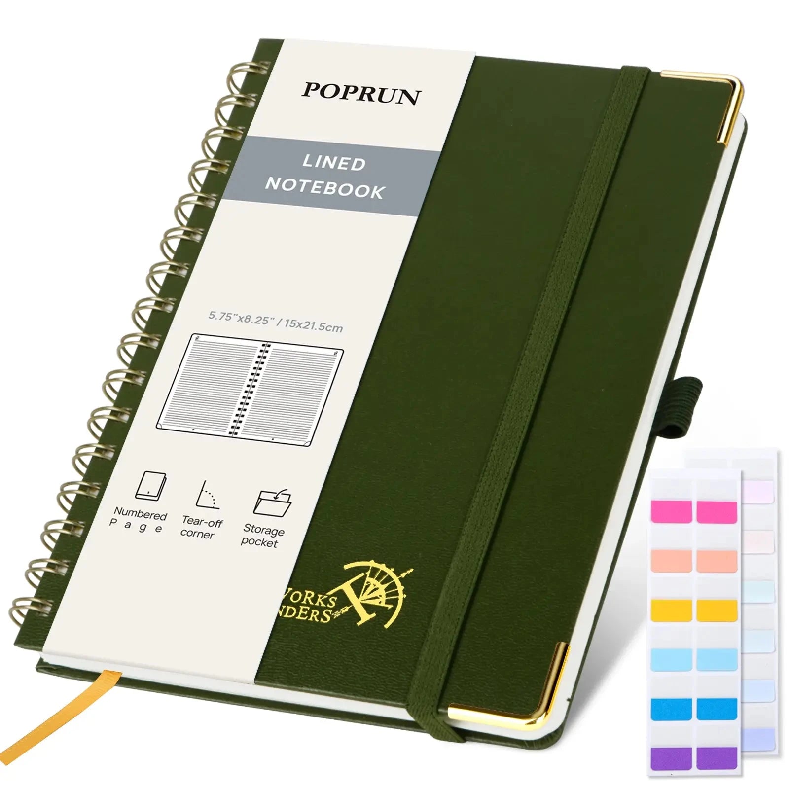 Olive – Grounded & Minimal Grounded and stylish, the Olive POPRUN notebook brings earthy tones to your desktop with serious functionality inside—ideal for minimalists and planners who love structure. About this item Model: WH145L LINED SPIRAL JOURNAL: This 5.75” x 8.25” size spiral-bound journal includes 141 pages of lined paper. It’s perfect for capturing your inspirations, drawing designs, and making sketches. 120GSM PREMIUM PAPER: Made with high-quality, 120 GSM acid-free paper in light ivory color, our journal notebook paper is thicker than average notebooks & pads, so you can confidently use most pens, pencils, and markers without ghosting and bleed-through. BUILT-IN EXTRAS: The Flexible ” TODAY ” Ruler allow you to quickly navigate and locate the current date. Tear-off corners and bookmark ribbons mark important pages, while an elastic closure keeps your planner secure. A foldable pocket stores notes, receipts, and documents. The notebook includes 8 tear-off pages and a pen loop for all your writing needs. Additionally,Personalize the cover and spine with included sticker index tabs. ELEGANT & DURABLE: Experience long-lasting durability with our spiral dotted notebook, featuring a well-crafted hardcover and sturdy twin-wire binding that allows for a 360-degree fold and lays flat effortlessly. 14 Colors to Choose: 14 Dynamic Colors Available: Perfect for school, college, or work, these notebooks offer a splash of color while helping you stay on top of your tasks in style.