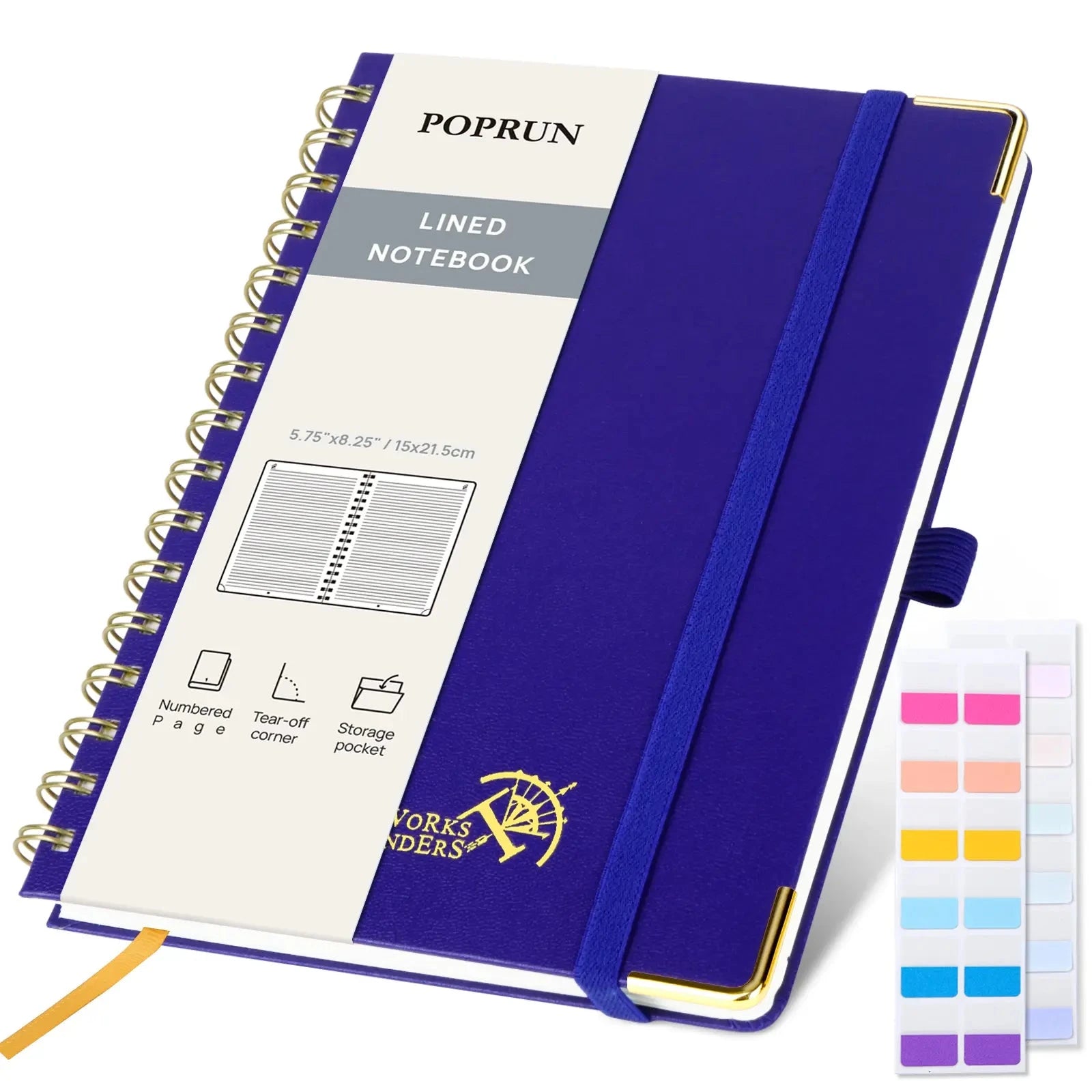 Royal Blue – Focused & Bold Bold and reliable, the Royal Blue POPRUN notebook is your everyday planning companion. With college-ruled pages and smooth spiral binding, it’s built to help you tackle anything from work meetings to creative journaling. About this item Model: WH145L LINED SPIRAL JOURNAL: This 5.75” x 8.25” size spiral-bound journal includes 141 pages of lined paper. It’s perfect for capturing your inspirations, drawing designs, and making sketches. 120GSM PREMIUM PAPER: Made with high-quality, 120 GSM acid-free paper in light ivory color, our journal notebook paper is thicker than average notebooks & pads, so you can confidently use most pens, pencils, and markers without ghosting and bleed-through. BUILT-IN EXTRAS: The Flexible ” TODAY ” Ruler allow you to quickly navigate and locate the current date. Tear-off corners and bookmark ribbons mark important pages, while an elastic closure keeps your planner secure. A foldable pocket stores notes, receipts, and documents. The notebook includes 8 tear-off pages and a pen loop for all your writing needs. Additionally,Personalize the cover and spine with included sticker index tabs. ELEGANT & DURABLE: Experience long-lasting durability with our spiral dotted notebook, featuring a well-crafted hardcover and sturdy twin-wire binding that allows for a 360-degree fold and lays flat effortlessly. 14 Colors to Choose: 14 Dynamic Colors Available: Perfect for school, college, or work, these notebooks offer a splash of color while helping you stay on top of your tasks in style.