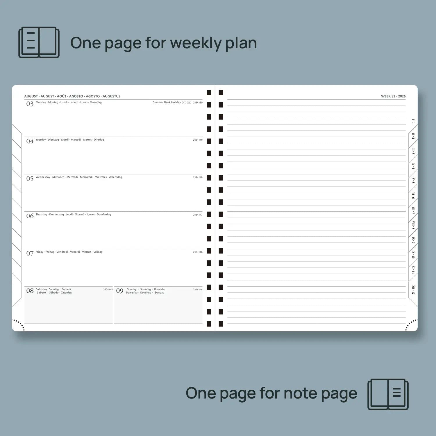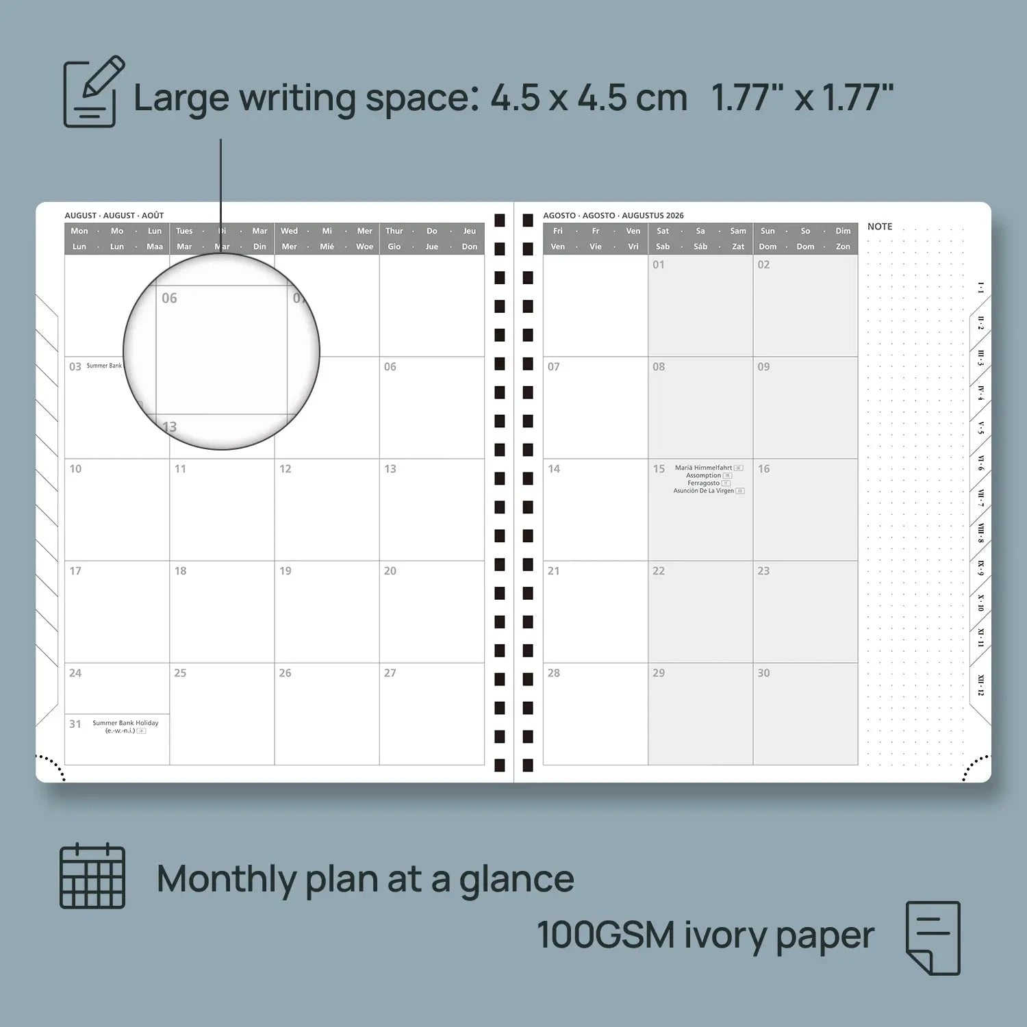 POPRUN 12 Month – Softcover Weekly planner Experience a year of perfect planning with our 12-month planner. Designed to help you manage your daily tasks, long-term goals, and important matters, this planner offers monthly, daily, and weekly layouts to record meetings, tasks, and personal activities. Stay organized and in control with ease as you work, study, or live your life with this efficient and well-organized time management tool. Description Model: W6NLK7-26 Year: Jan.-Dec. 2026 Format: Weekly Binding: Spirale Layout: 1 pages per week & horizontal line page Cover: Soft Cover Page Size: 8.5×10.5 in / 26.5×21.5 cm Bonus Features: Built-in “Today” ruler for easy measurement and drawing Paper Weight: The inner pages are 100gsm