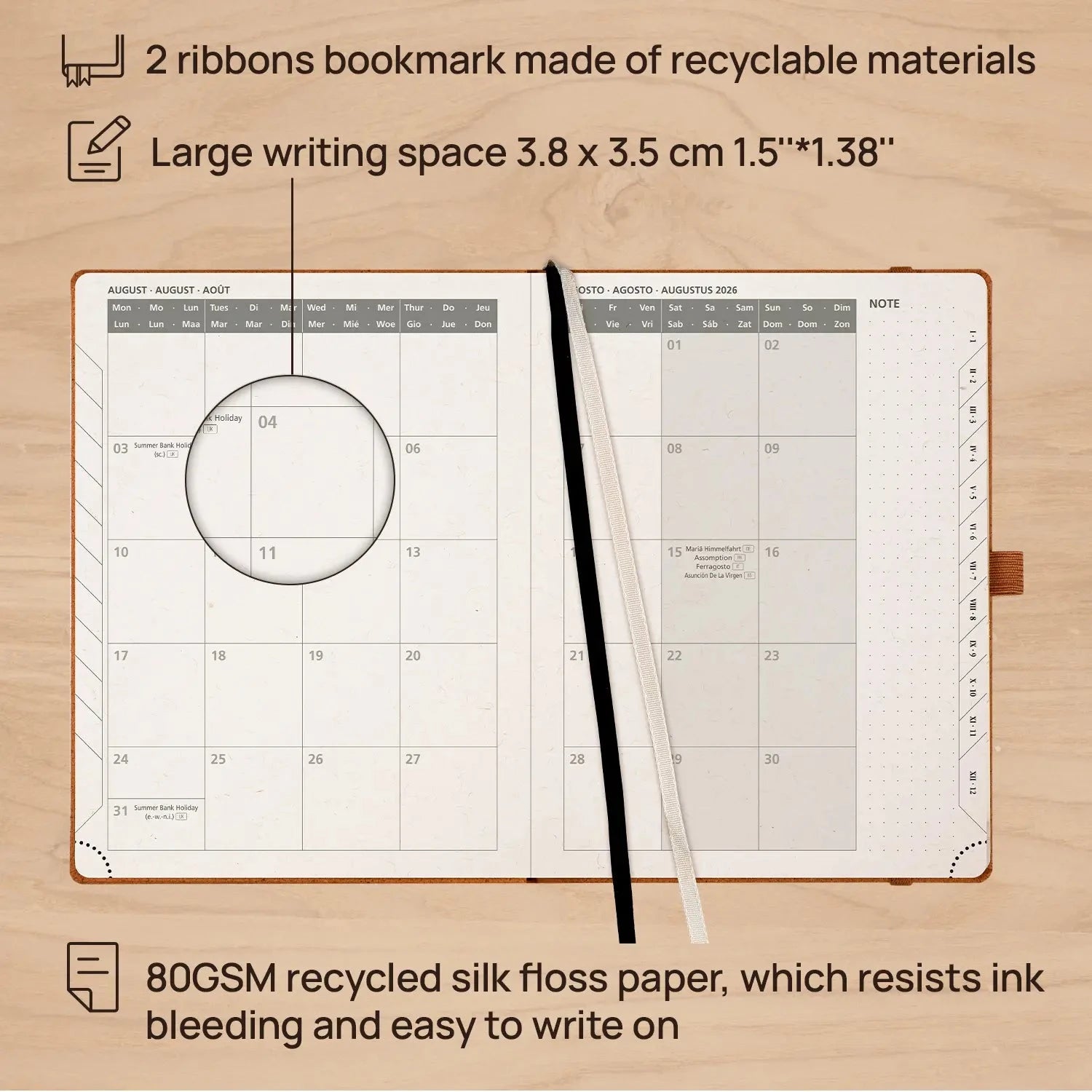 POPRUN 12-Month Hardcover Weekly Planner Experience a year of perfect planning with our 12-month planner. Designed to help you manage your daily tasks, long-term goals, and important matters, this planner offers monthly, daily, and weekly layouts to record meetings, tasks, and personal activities. Stay organized and in control with ease as you work, study, or live your life with this efficient and well-organized time management tool. Model: C6RO7-26 Year: Jan.-Dec. 2026 Format: Weekly Cover: Hard Cover Binding: Casebound Size: 8.5×6.5 in / 22.5×16.5 cm Layout: Vertical, 2 pages per week Paper Weight: The inner pages are 100gsm Plan with clarity. Live with balance.Step into 2026 with a planner designed to do more than just hold your appointments—it keeps your life aligned. Whether you’re balancing work meetings, study sessions, family activities, or personal goals, this hardcover weekly planner gives you the structure and freedom you need to stay on top of everything without the stress.