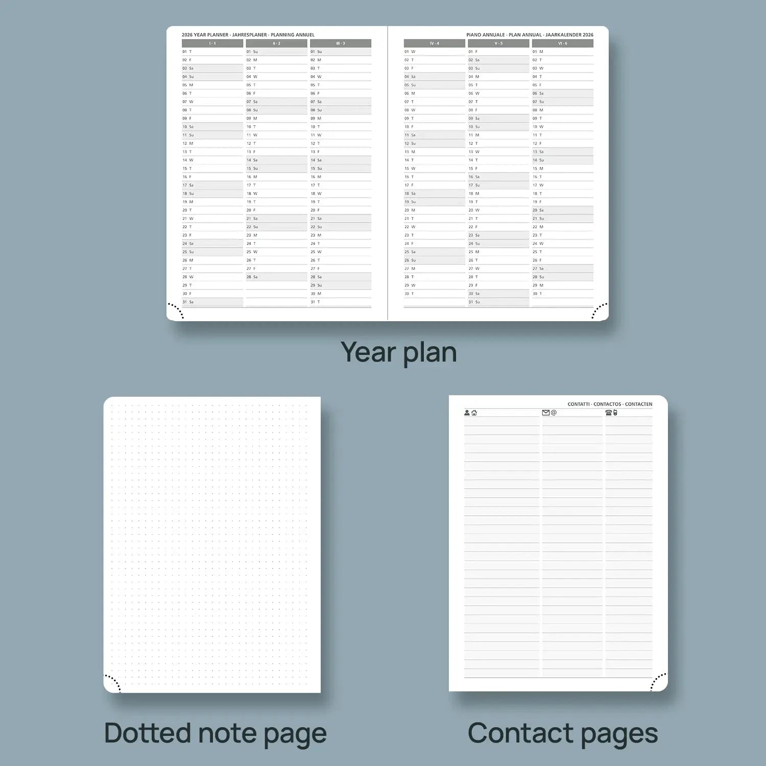 POPRUNย 12 Month –ย Softcover Weekly planner Experience a year of perfect planning with our 12-month planner. Designed to help you manage your daily tasks, long-term goals, and important matters, this planner offers monthly, daily, and weekly layouts to record meetings, tasks, and personal activities. Stay organized and in control with ease as you work, study, or live your life with this efficient and well-organized time management tool. Model: C6NLO7-26 Year: Jan.-Dec. 2026 Format: Weekly Binding: Casebound Layout: 1 pages per week & horizontal line page Cover: Soft Cover Page Size: 8.5×6.5in / 22.5cmx16.5cm Paper Weight: The inner pages are 100gsm