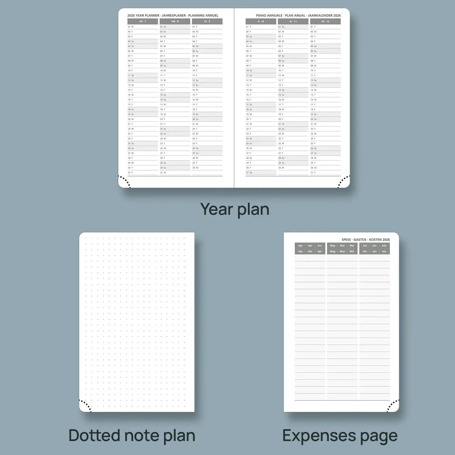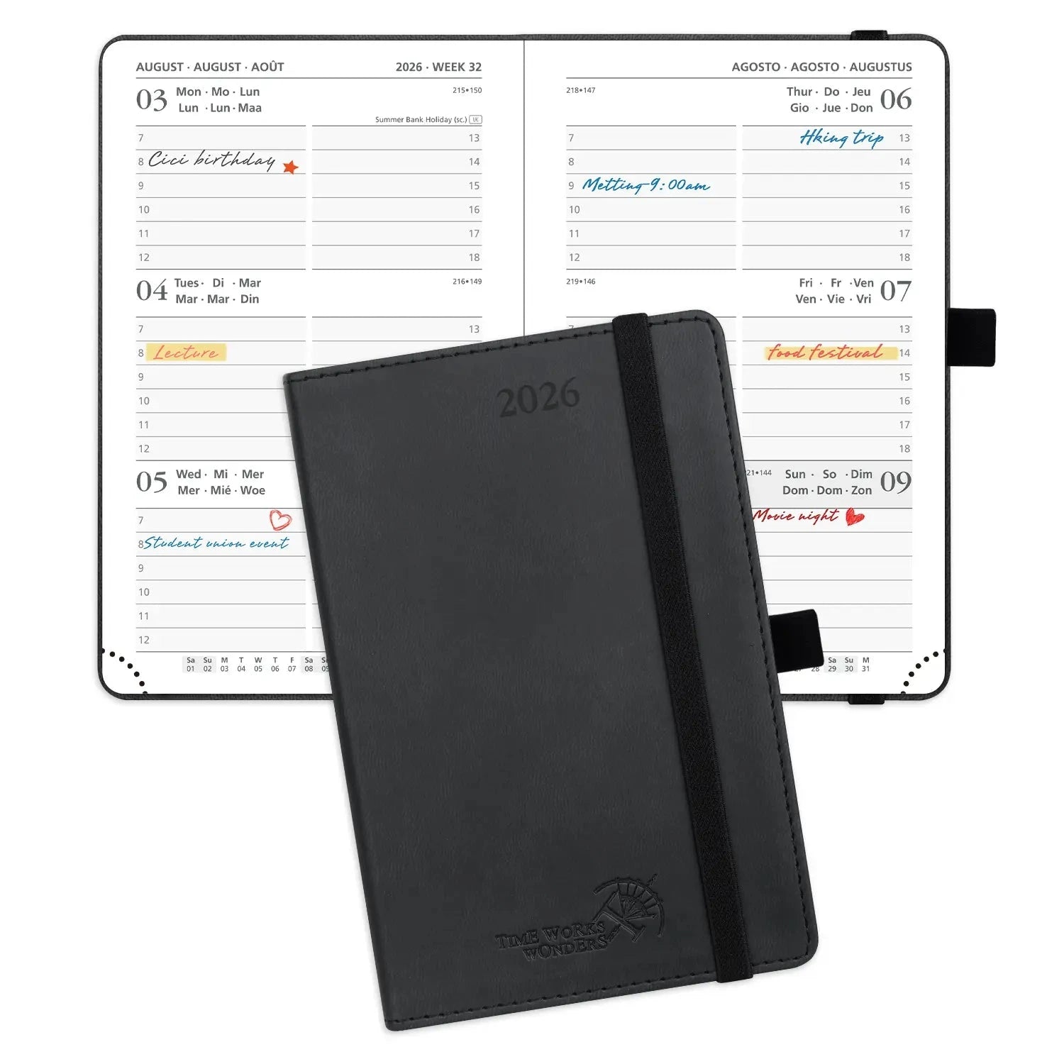 POPRUNย 12 Month –ย Softcover Weekly planner Experience a year of perfect planning with our 12-month planner. Designed to help you manage your daily tasks, long-term goals, and important matters, this planner offers monthly, daily, and weekly layouts to record meetings, tasks, and personal activities. Stay organized and in control with ease as you work, study, or live your life with this efficient and well-organized time management tool. Description Model: C6LA6-26 Year: Jan.-Dec. 2026 Format: Weekly Binding: Casebound Layout: Vertical, 2 pages per week Cover: Soft Cover Size: 6.25x4in / 16×10.5 cm Paper weight: The inner pages are 100gsm