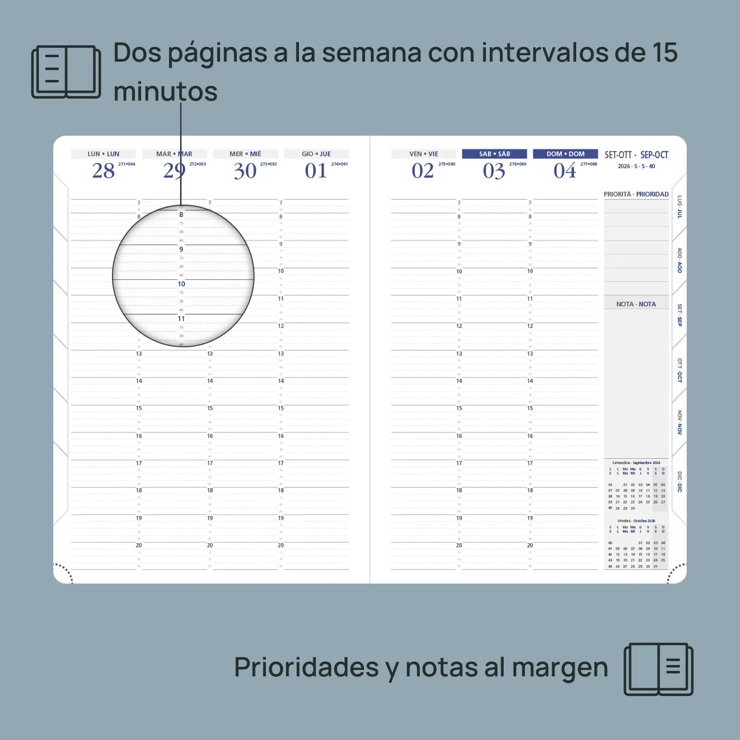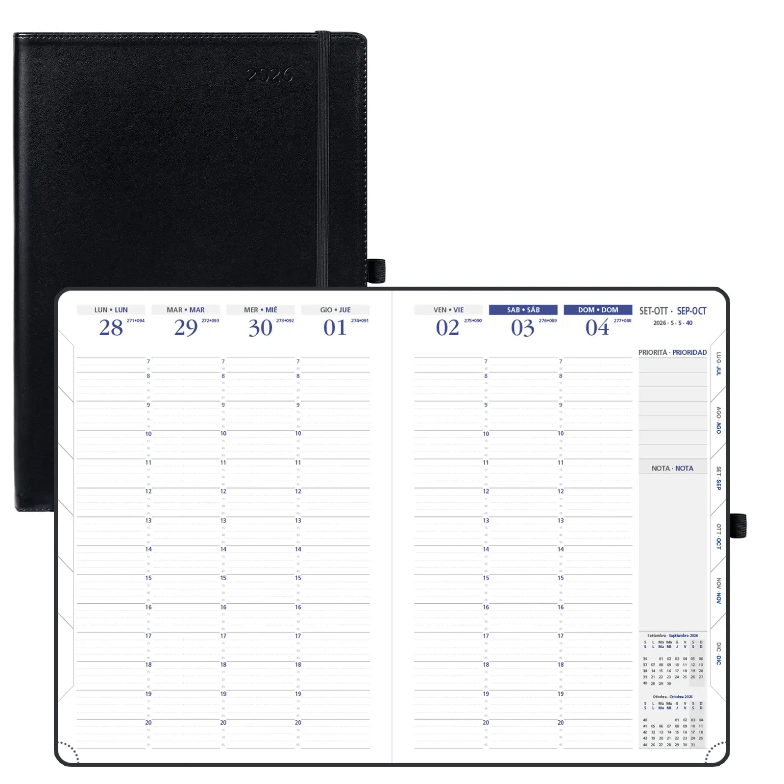POPRUN 12-Month Softcover Weekly Planner Keep your work and personal life in balance with our 12-month weekly planner. Covering January to December 2026, it features a clear weekly layout that helps you efficiently organize tasks, goals, and appointments, whether for work or personal matters. The week-at-a-glance view gives you structured oversight of your priorities, while the 12-month planner view supports long-term planning. Designed for busy schedules, this planner keeps you focused, prepared, and always in control. Model: CISLU7-26 Year: Jan.-Dec. 2026 Language: Spanish / Italian Format: Weekly Cover: Soft Cover Binding: Casebound Size: 29.7cm x 21cm Layout: Vertical, 2 pages per week Paper Weight: The inner pages are 100gsm Make space for what matters most.When life is packed with deadlines, meetings, classes, and family commitments, clarity is everything. The POPRUN 12-Month Softcover Weekly Planner is designed to give you room to breathe and structure to thrive. Covering January to December 2026, this large-format planner offers the space and flexibility you need to organize every detail—without feeling overwhelmed. With its week-at-a-glance vertical layout, you can map out your days in 15-minute intervals from early morning to evening. Whether you’re scheduling appointments, blocking study time, or carving out moments for yourself, this planner helps you find balance in the busiest of seasons.
