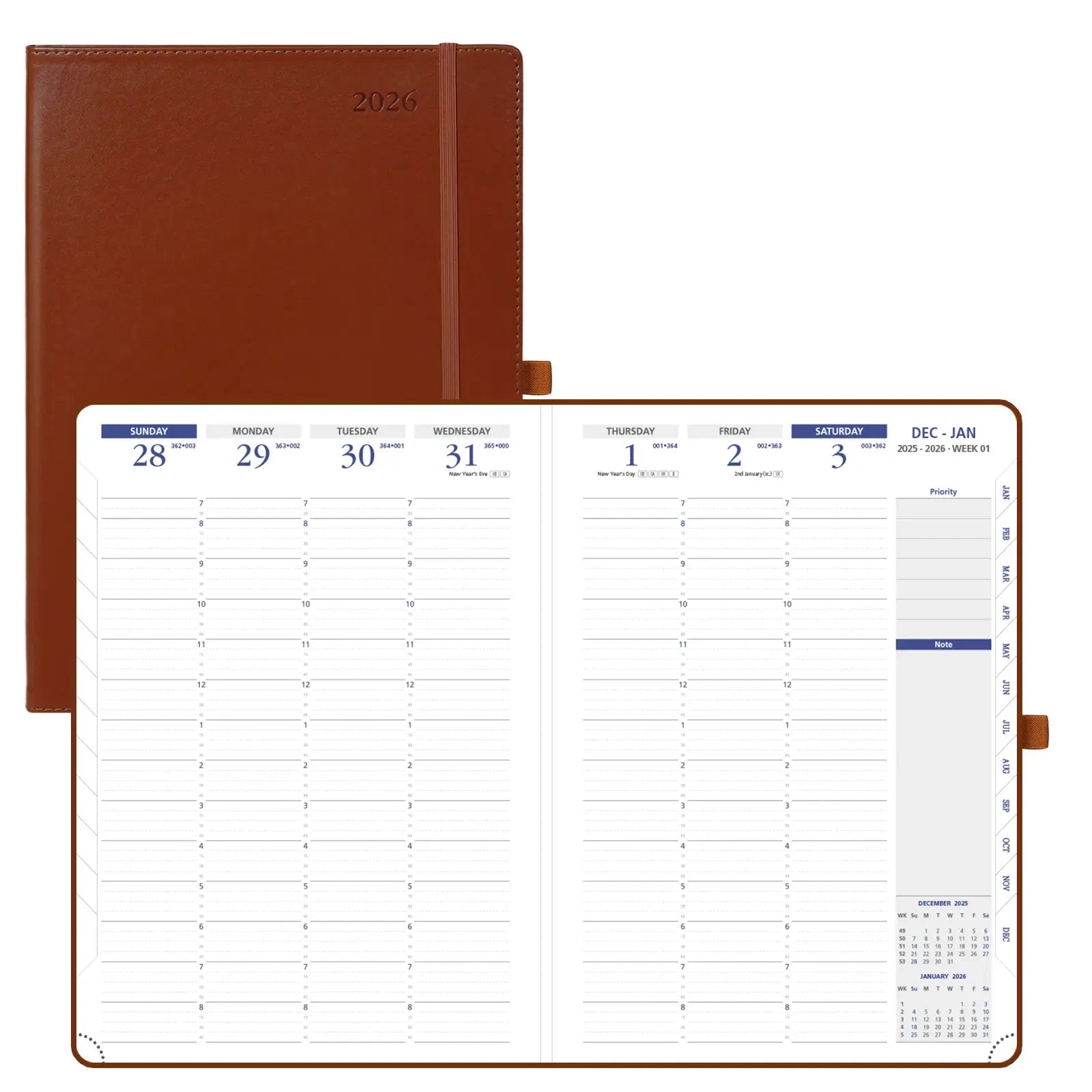 POPRUN 12-Month Softcover Weekly Planner Keep your work and personal life in balance with our 12-month weekly planner. Covering January to December 2026, it features a clear weekly layout that helps you efficiently organize tasks, goals, and appointments, whether for work or personal matters. The week-at-a-glance view gives you structured oversight of your priorities, while the 12-month planner view supports long-term planning. Designed for busy schedules, this planner keeps you focused, prepared, and always in control. Model: CELU7-26 Year: Jan.-Dec. 2026 Format: Weekly Cover: Soft Cover Binding: Casebound Size: 8.25×11.75 in / 21×29.7 cm Layout: Vertical, 2 pages per week Paper Weight: The inner pages are 100gsm Make space for what matters most.When life is packed with deadlines, meetings, classes, and family commitments, clarity is everything. The POPRUN 12-Month Softcover Weekly Planner is designed to give you room to breathe and structure to thrive. Covering January to December 2026, this large-format planner offers the space and flexibility you need to organize every detail—without feeling overwhelmed. With its week-at-a-glance vertical layout, you can map out your days in 15-minute intervals from early morning to evening. Whether you’re scheduling appointments, blocking study time, or carving out moments for yourself, this planner helps you find balance in the busiest of seasons.