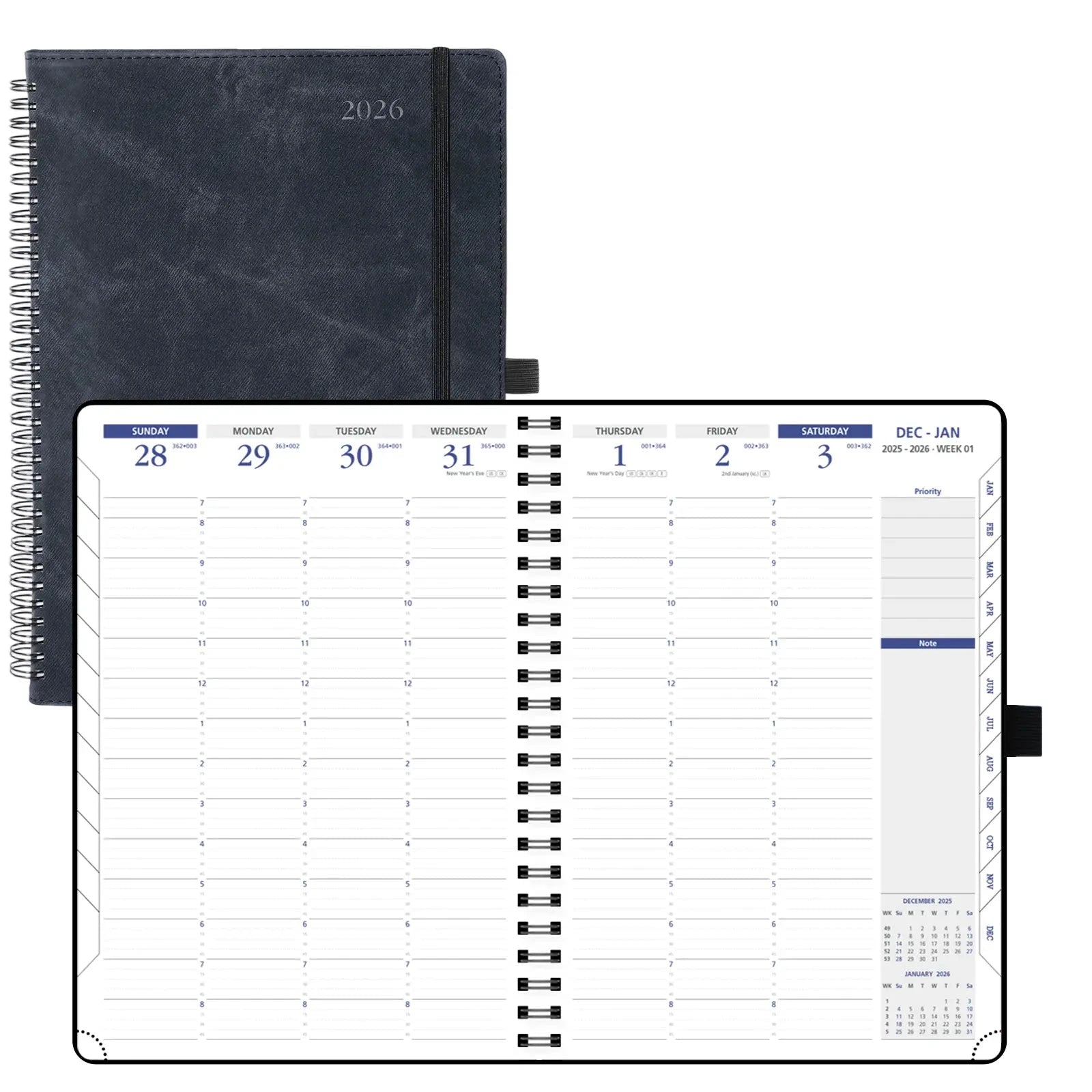 POPRUNย 12-Month Softcover Weekly Planner Stay perfectly organised all year long with the POPRUN 2026 Diary (JanโDec). Designed for busy schedules, this elegant organiser makes it easy to plan your days, track appointments, and balance both work and personal life. Model: WELU7-26 Year: Jan.-Dec. 2026 Format: Weekly Cover: Soft Cover Binding: Spiral Size: 11.75 x 8.25 in / 29.7 x 21 cm Layout: Vertical, 2 pages per week Bonus Features: Built-in โTodayโ ruler for easy measurement and drawing Paper Weight: The inner pages are 100gsm 12-Month Weekly & Monthly Planner Week-to-view layout across 2 pages with 15-minute appointment intervals โ ideal for managing meetings, lessons, or daily routines. Monthly overview pages with a dedicated notes section help you see the bigger picture and set clear goals. Whether youโre a professional managing client meetings, a student keeping on top of studies, or someone who loves the satisfaction of ticking off tasks, the POPRUN 2026 Diary is designed to bring clarity, calm, and style to your year.